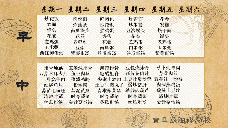 宜昌欧阳修学校每周食谱(2月19日至2月23日)