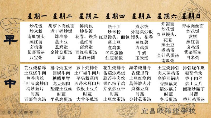 宜昌欧阳修学校每周食谱(11月18日至11月24日)