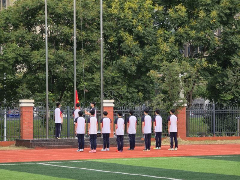 激昂的《义勇军进行曲》奏响,全体人员肃立,目光坚定地注视着五星红旗冉冉升起。鲜红的国旗在微风中飘扬,嘹亮的歌声回荡在校园上空,新生们紧握双拳、神情肃穆,在庄重的升旗仪式中深刻感受爱国精神的洗礼,将“强国有我”的信念深深植根心中。