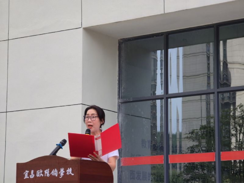 伴随着清晨的阳光,主持人谭梦媛老师以富有感染力的声音鼓舞大家,军训是新生融入校园、锤炼品格的重要一课,是培养责任担当与团队精神的关键契机。随后,她高声宣布:“宜昌欧阳修学校2025年高一新生军训开营仪式正式开始!”全场响起热烈掌声,军训的序幕就此拉开。
