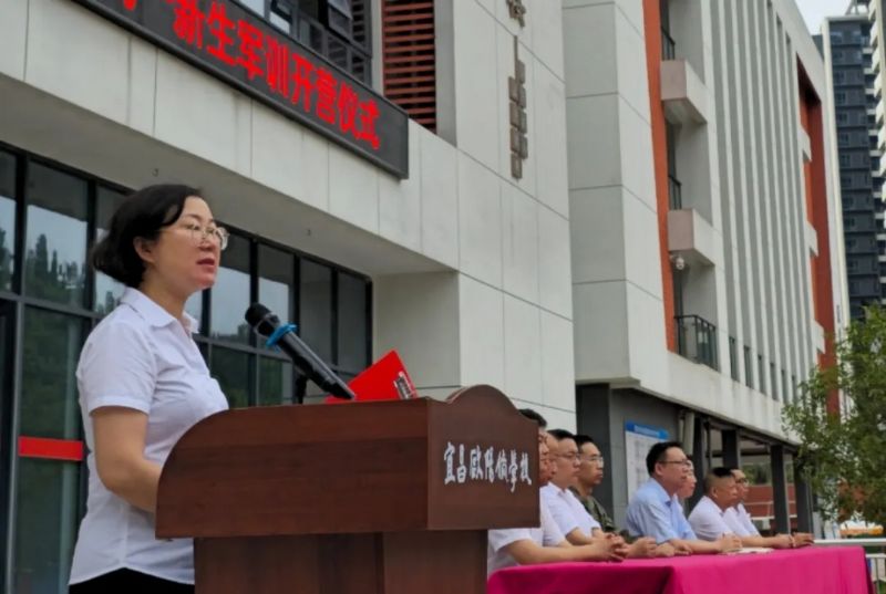 黄校长为本次军训致开幕词。她代表学校向承训教官致以诚挚感谢,向迈入校园的高一新生表示热烈欢迎。黄校长围绕“军训的价值”展开讲话,强调军训不仅是对身体素质的锻炼,更是对意志品质、纪律意识与集体观念的培育,希望新生们能以“掉皮掉肉不掉队,流血流汗不流泪”的精神投入训练,在汗水中学会坚持,在协作中懂得团结,将军训中收获的品质转化为未来学习与生活的动力,成长为有理想、有担当的欧校学子。话语间满含对新生的殷切期望,引发在场师生的强烈共鸣。