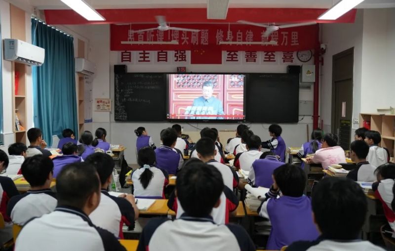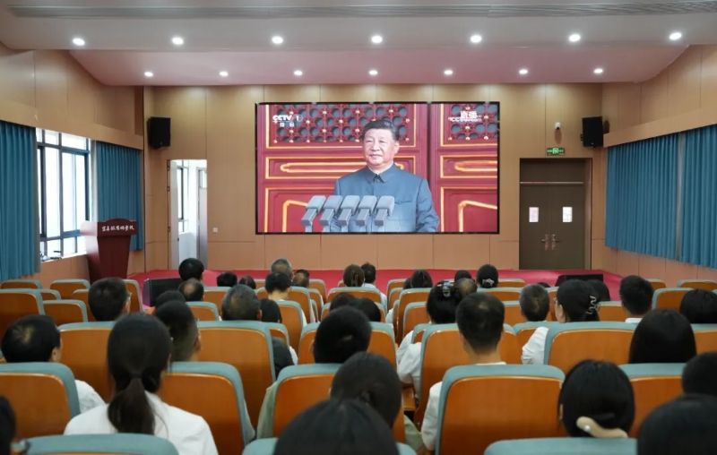 2025年9月3日,宜昌欧阳修学校组织师生共同观看抗战胜利80周年阅兵盛典。习近平总书记发表慷慨激昂、振奋人心的重要讲话,隆重纪念中国人民抗日战争暨世界反法西斯战争胜利80周年。铭记历史、缅怀先烈、珍爱和平、开创未来。中华民族伟大复兴势不可挡!人类和平与发展的崇高事业必将胜利。当共和国钢铁雄师的号声响彻天际,当现代化装备方阵以排山倒海之势驶过天安门广场,当战机梯队呼啸着划破长空,整个校园沸腾着自豪与感动。师生们凝神屏息,眼中闪烁着激动的泪光,在这场气势恢宏的国家盛典中真切感受到了强国强军的时代强音。