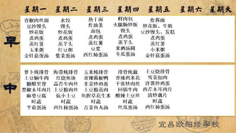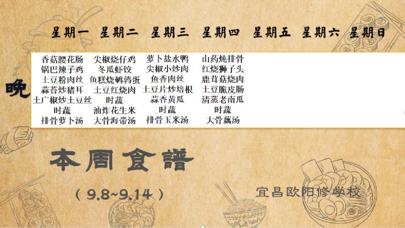 宜昌欧阳修学校每周食谱(9月8日至9月14日)