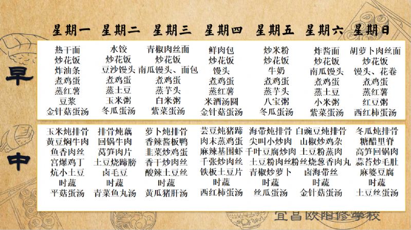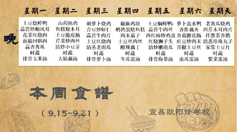 宜昌欧阳修学校每周食谱(9月15日-9月21日)