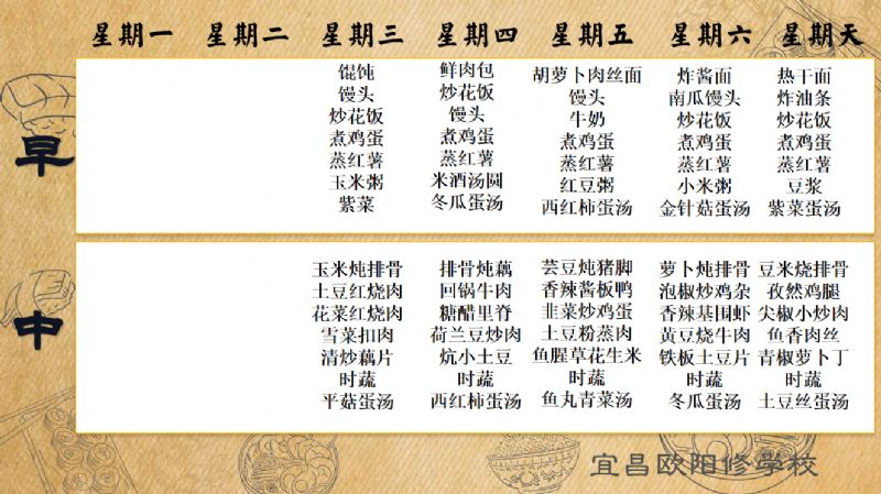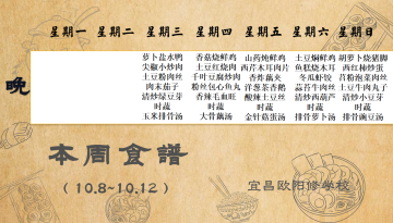 宜昌欧阳修学校每周食谱(10月8日-10月12日)