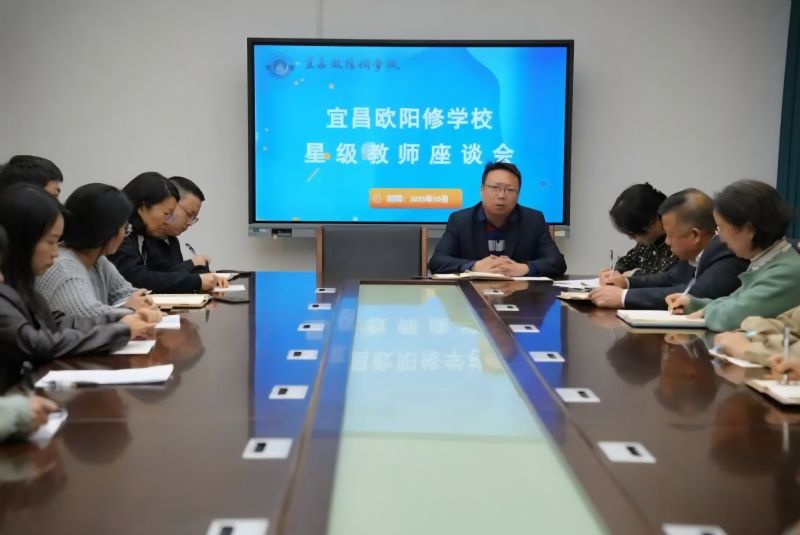 为表彰先进,树立典型,进一步加强师资队伍建设,10月14日,宜昌欧阳修学校举行了以“促先进、树榜样、强队伍”为主题的星级教师座谈会。校领导出席本次会议,与新老星级教师齐聚一堂,共话教育初心,展望未来发展。