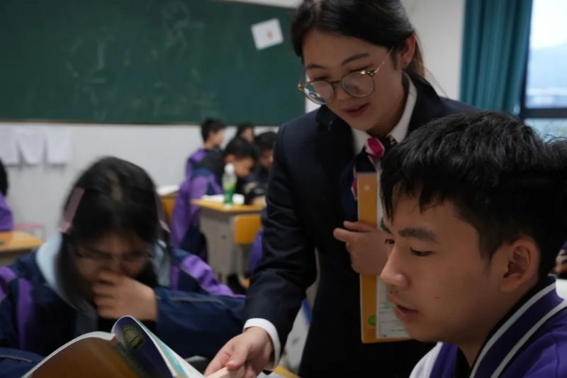 高二(5)班的英语课堂以学生们嘹亮的课前歌声开启,学生们流畅的演唱展现出扎实的语言功底与学习热情,让在场家长倍感欣慰。与此同时,高二(4)班的英语教学也在如火如荼的进行,课堂采用全英文互动模式,陆老师结合多媒体课件与情景模拟开展教学,引导学生热烈讨论,课堂节奏张弛有度,既锻炼了学生的语言表达能力,也充分激发了学习兴趣,尽显教师扎实的教学功底与对学生个体的细致关注。