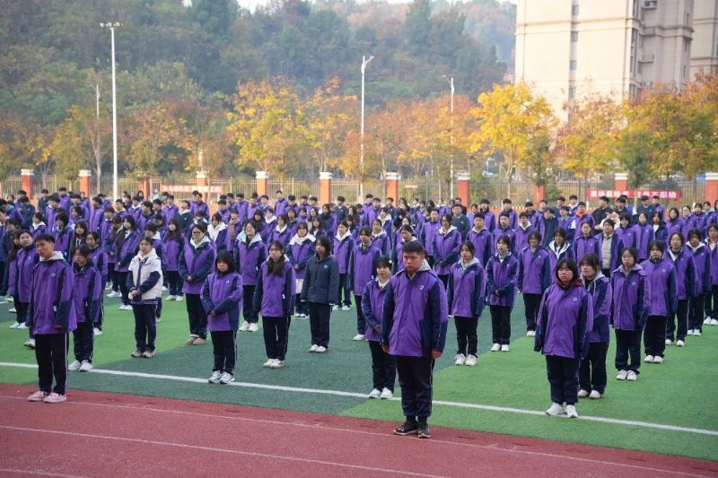 伴随着雄壮的《义勇军进行曲》,五星红旗冉冉升起,全体师生肃立注目,高唱国歌,嘹亮的歌声回荡在校园上空。庄重的升旗仪式不仅是对爱国主义情怀的深情抒发,更凝聚了全校师生爱国爱校、笃行致远的共同信念,为整场活动奠定了肃穆而昂扬的基调。