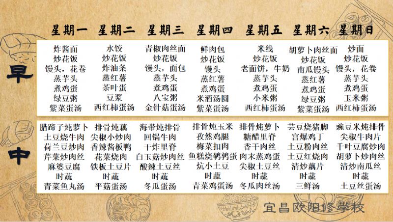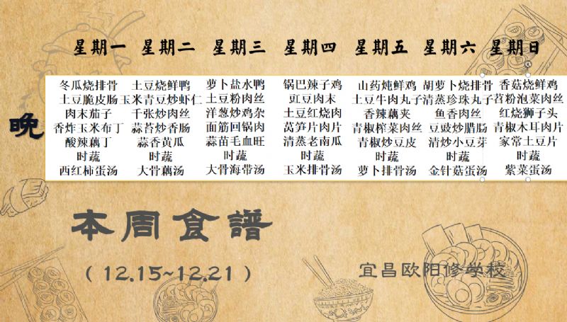 宜昌欧阳修学校每周食谱(12月15日-12月21日)