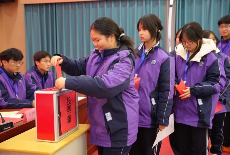 本次大会筹备工作严格遵循民主集中制原则,经各班级民主酝酿、差额选举,共产生90名正式代表,涵盖初中九年级及高中三个年级,其中团员代表47名、非团员代表43名,男生女生各45名,既有学生干部,也有在学业、文体、志愿服务等方面表现突出的学生代表,代表结构兼具广泛性与先进性。经代表资格审查小组严格审核,所有代表资格全部有效,为大会的民主、规范召开奠定了坚实基础。