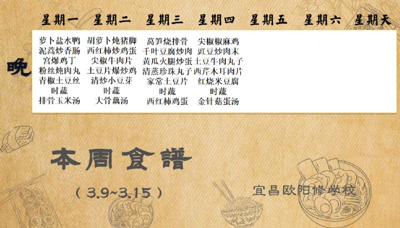 宜昌欧阳修学校每周食谱(3月9日-3月15日)
