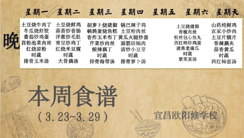 宜昌欧阳修学校每周食谱(3月23日-3月29日)
