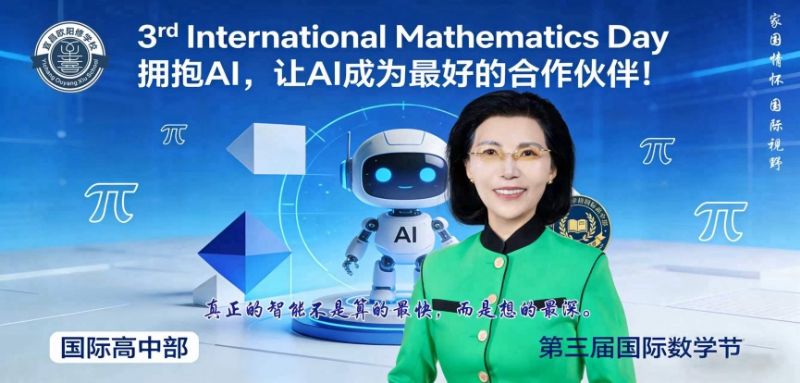 2026年3月14日,国际高中部举行第三届国际数学节。这次的主题是拥抱AI并成为AI的主人。国际高中部校长李翠银和雅思外教Helena以及普高部高一年级主任李骏分别致开幕词、主旨发言和闭幕词。国际高中部Emily和Allen双语主持。主要内容归纳如下: