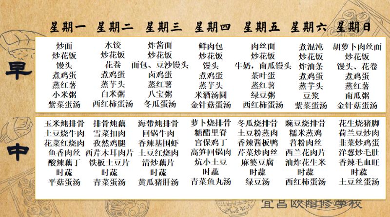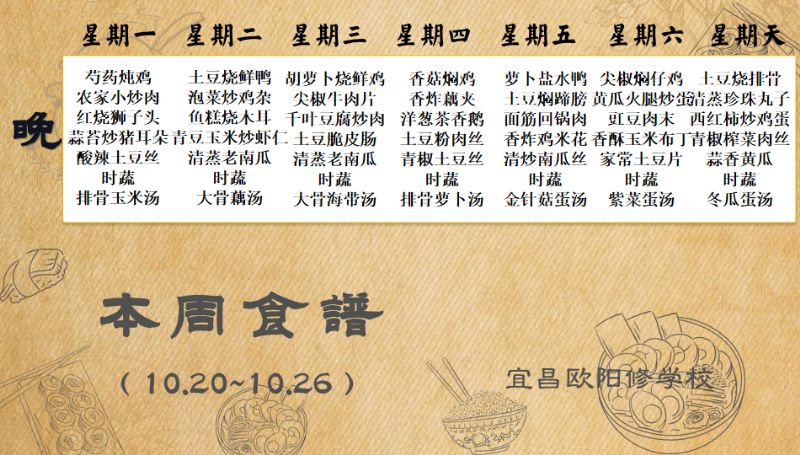 宜昌欧阳修学校每周食谱(10月20日-10月26日)
