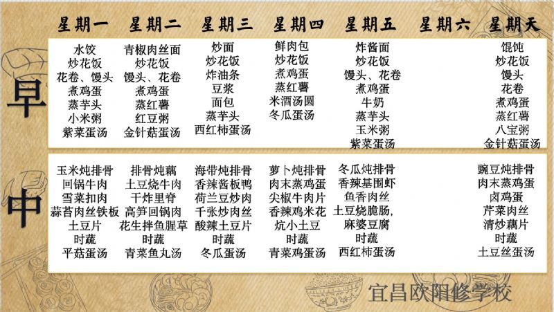 宜昌欧阳修学校每周食谱(3月23日-3月29日)