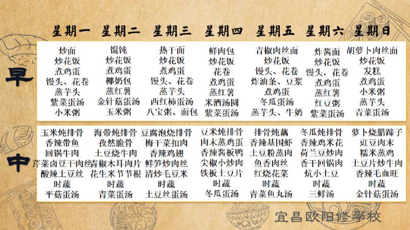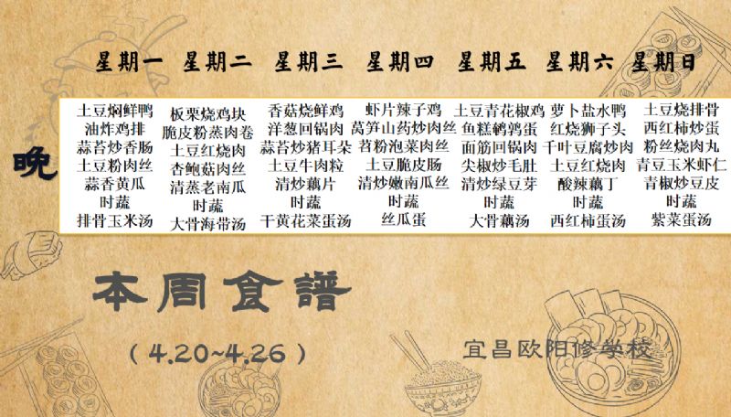 宜昌欧阳修学校每周食谱(4月20日-4月26日)